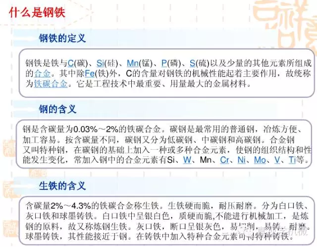 在通用機械微信上看到鋼鐵基礎知識總結,做的比較***,只是一彈一彈等的心焦,把ranfand分享的78頁ppt展示出來,大家直接就收、收、收吧!